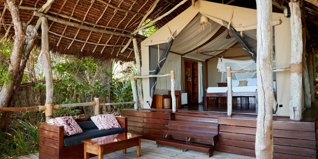 The aesthetic is barefoot and brilliant. Thatch roofs, canvas walls, and rich wooden floors create an environment that feels thrillingly remote, yet the service is strictly five-star. You will fall asleep to the sound of waves lapping the shore and wake up to the calls of bushbabies, completely detached from the demands of civilization.