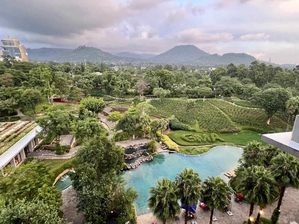 Gran Melia represents the modern face of Tanzanian luxury. The architecture is bold and expansive, utilizing vast panes of glass to ensure the imposing peak of Mount Meru is visible from almost every angle of the property, including the infinity pool.
