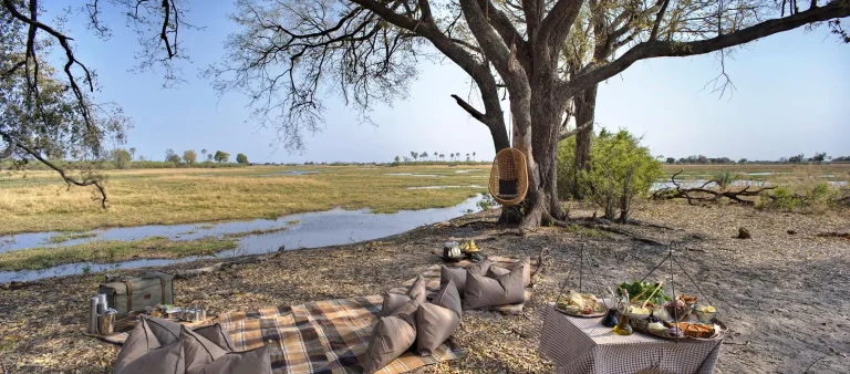 Enjoy a private, romantic vintage picnic set up exclusively for you beneath the sprawling branches of an ancient Baobab tree. You will experience exclusive wilderness access and bespoke dining setups.