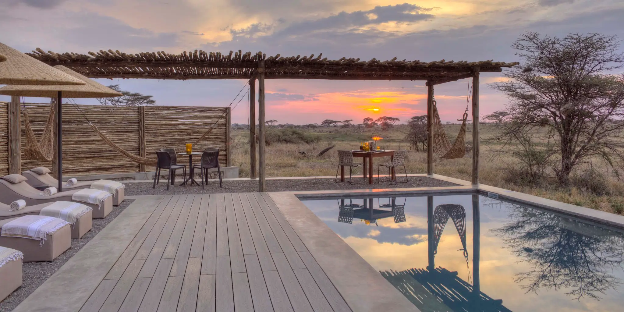 Return to your suite to draw a hot bath on your private deck, watching the golden light fade across an endless, empty horizon.
