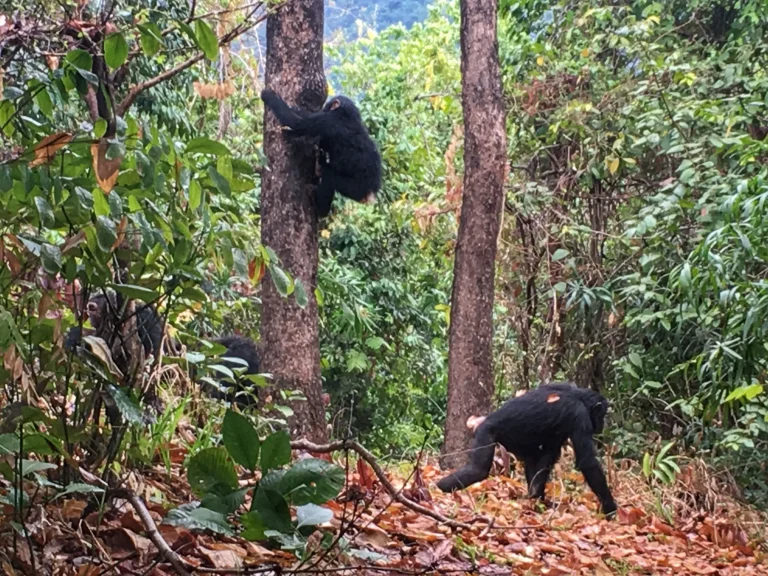 A rigorous, deeply rewarding hike through pristine rainforest guided by expert trackers to locate and observe a habituated family of wild chimpanzees in their natural habitat.